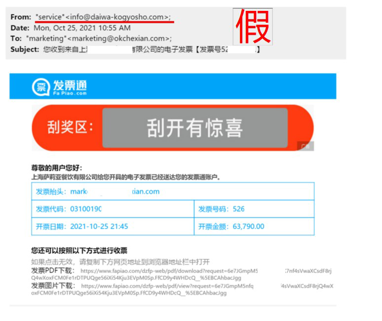 近日有收票客户(包括个人消费者和企业消费者)反馈接收到非发票通官方发出的仿冒邮件,引导用户前往非发票通页面注册登录账户。