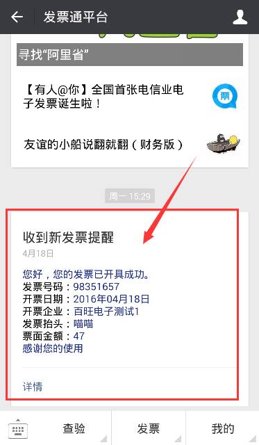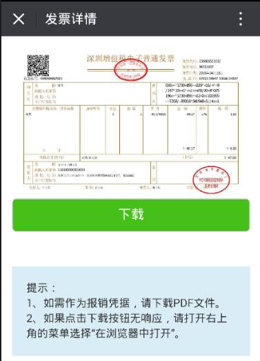 进入发票通微信公众号fapiaotong,接收、查看、下载电子发票。永久保存,可随时调用。