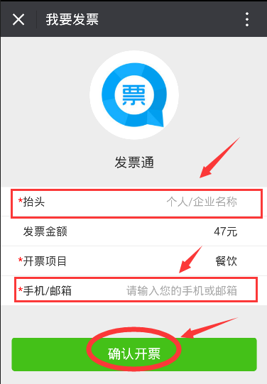 填入发票抬头、手机号或邮箱号,点击“确认开票”,成功开出电子发票。